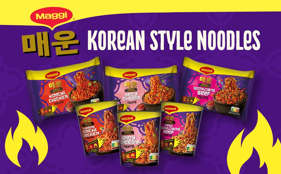 Koreanisch inspiriert, würzig und voll im Trend: Mit den MAGGI Korean Style Noodles genießt du spicy Nudelgerichte im Korean Style bald ganz einfach zuhause.