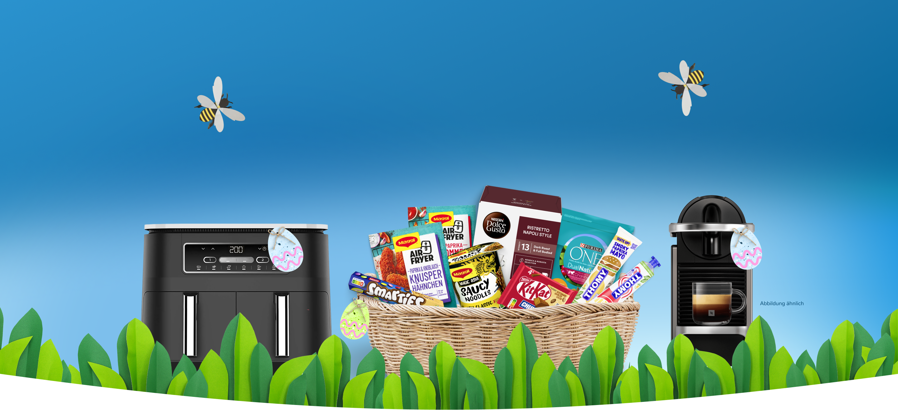 Unter allen Teilnehmern, die im Zeitraum vom 02.04.2026 – 19.04.2026 das Oster-Puzzle vollständig lösen und das Teilnahmeformular absenden, werden folgende Preise verlost: 5 x Ninja Airfryer inklusive MAGGI Starterpaket, 10 x Nespresso Maschinen mit Kapsel-Starterpaket, 10 x NESCAFÉ® Dolce Gusto® Maschinen mit Kapsel-Starterpaket, 50 x Produktpakete unserer Nestlé Marken im Wert von je 50 €. Eine Barauszahlung des Gewinns und der Rechtsweg sind ausgeschlossen. Voraussetzung für die Teilnahme ist das vollständige Ausfüllen und Abschicken des Teilnahmeformulars nach Lösung des Puzzles. Die Gewinner:innen werden per Los ermittelt und per E-Mail benachrichtigt. Die Teilnahme über die Einschaltung Dritter ist ausgeschlossen.